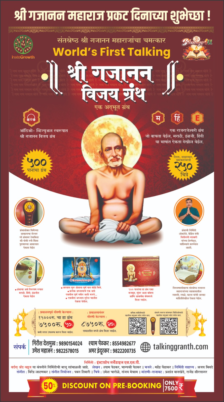 “टॉकिंग श्री गजानन विजय ग्रंथ” हा केवळ वाचनासाठीचा ग्रंथ नसून भाविकांसाठी अनुभवात्मक आध्यात्मिक प्लॅटफॉर्म म्हणून साकारण्यात आला आहे.